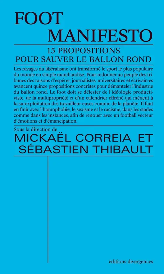 Les ravages du libéralisme ont transformé le sport le plus populaire du monde en vulgaire marchandise. Afin de redonner au peuple des tribunes le droit de ne plus désespérer, journalistes, universitaires, éducateurs et écrivains se sont attelé·es à quinze propositions concrètes pour démanteler l'industrie du ballon rond. Il est temps que le foot se détache de son idéologie productiviste, fondée sur des logiques de profitabilité financière. Mais aussi qu'il abandonne la multipropriété, le ré-arbitrage technologique ou un calendrier effréné qui ont mené le ballon rond vers l'overdose et l'exploitation de ses travailleur·euses. La fin de partie doit être sifflée